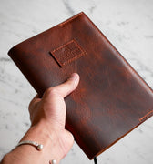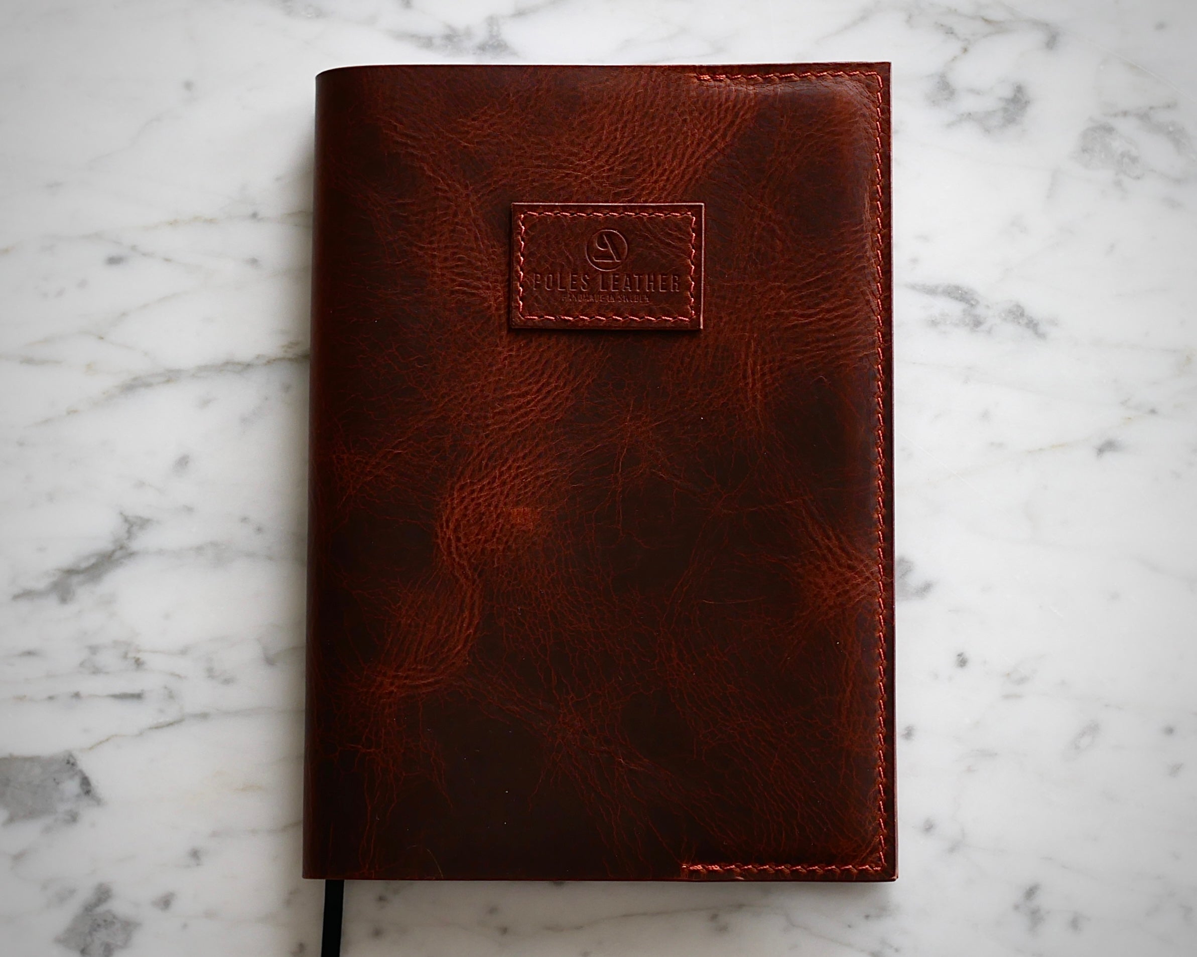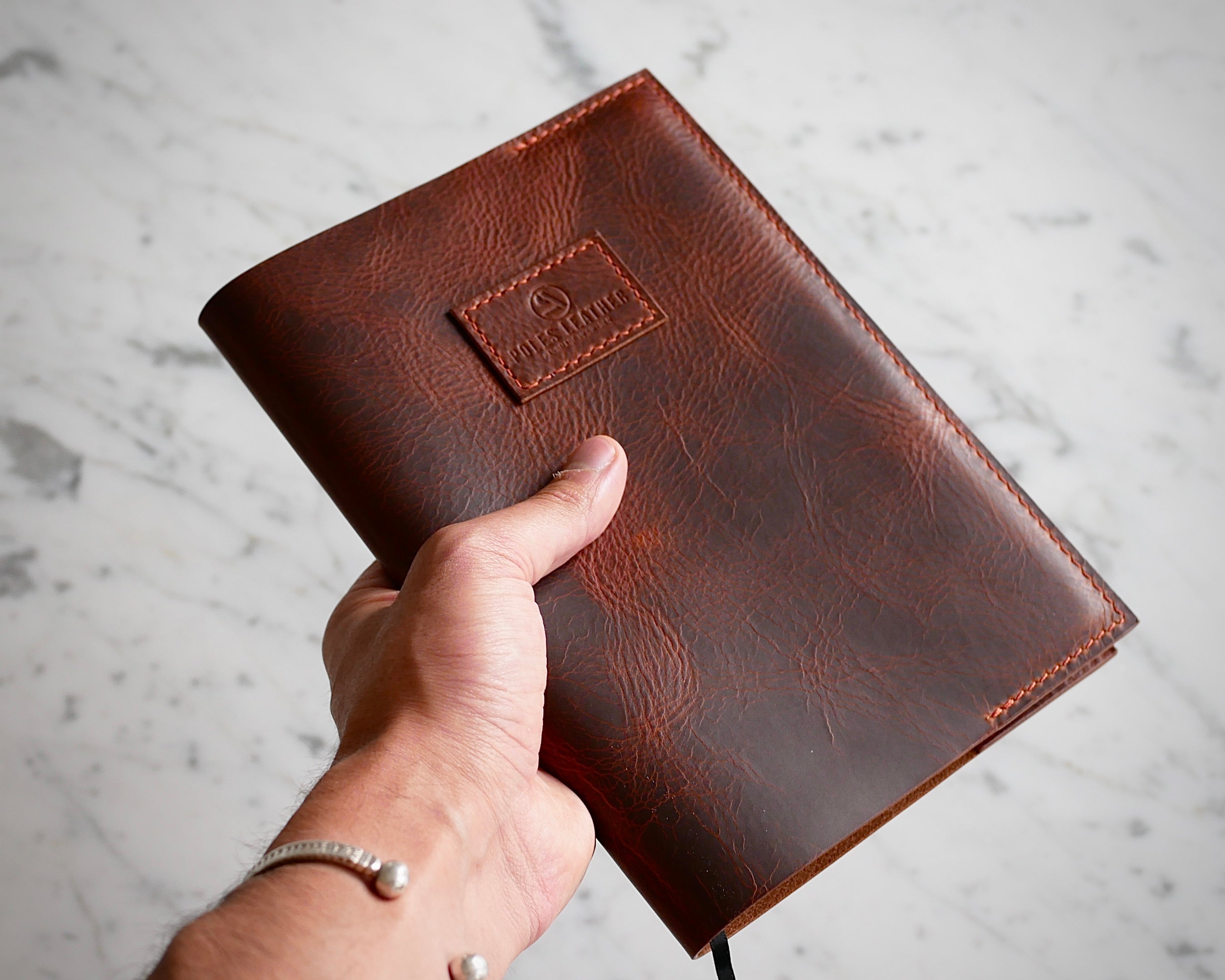 A timeless cover crafted in premium leather, designed to protect and elevate your notebook. Hand-stitched with care, it combines durability with a natural feel that only gets better with use. Fits standard A5 notebooks and slips easily into your bag, making it the perfect everyday companion for your notes, sketches, or ideas.